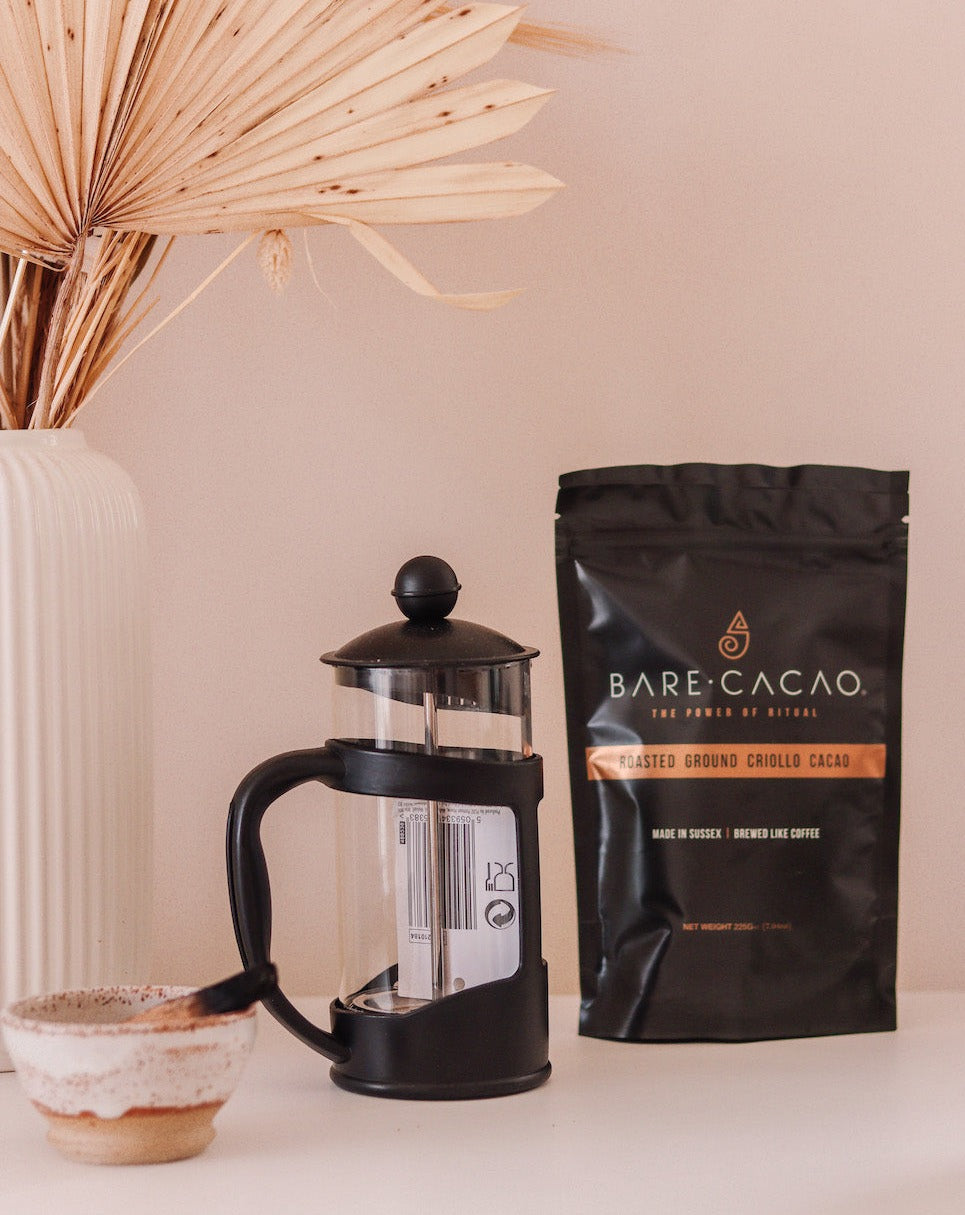 One single 225g pack of Bare Cacao, and one single serve (350ml) cafetiere.